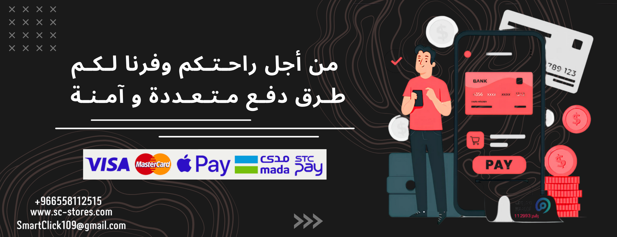 جميع طرق الدفع الامنة متوفرة لدينا Apple Pay , Mastercard , Visa , mada , STC Pay